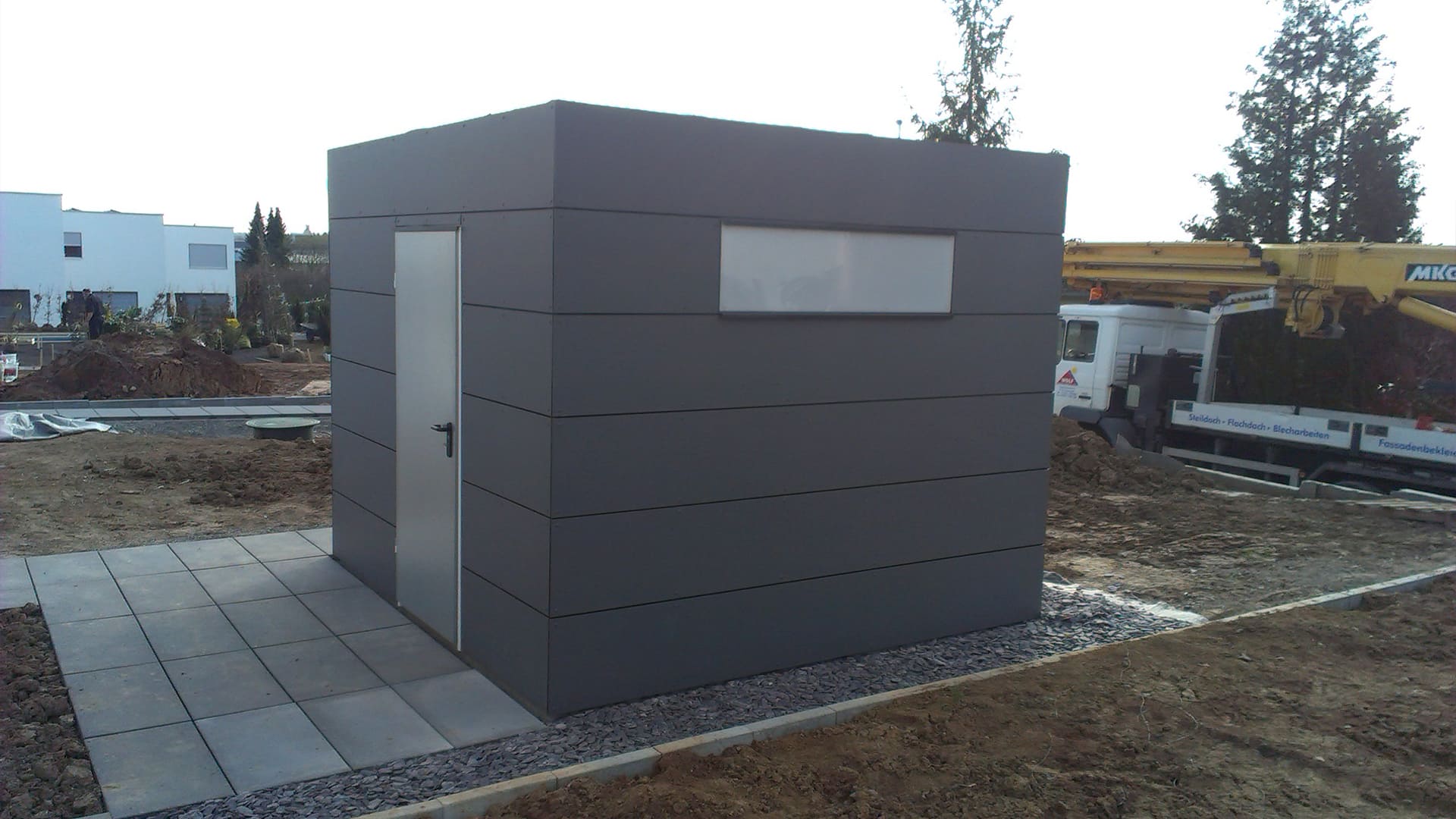 Die Gartenhäuser werden nach Ihren individuellen Wünschen in unserem Betrieb vorgefertigt, um Sie später mit unserem hauseigenen Kran an Ihren gewünschten Ort aufzustellen.